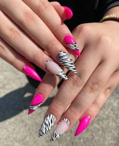 The pink color on the stiletto nails is beautiful and gives off some feminine vibes. Jelly nails are also among the most trending designs.